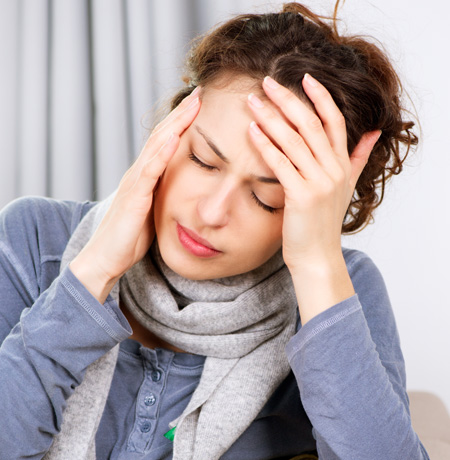 Headache is defined as a pain arising from the head or upper neck of the body. The pain originates from the tissues and structures that surround the skull or the brain because the brain itself has no nerves that give rise to the sensation of pain (pain fibers). The thin layer of tissue (periosteum) that surrounds bones, muscles that encase the skull, sinuses, eyes, and ears, as well as thin tissues that cover the surface of the brain and spinal cord (meninges), arteries, veins, and nerves, all can become inflamed or irritated and cause headache. The pain may be a dull ache, sharp, throbbing, constant, intermittent, mild, or intense.